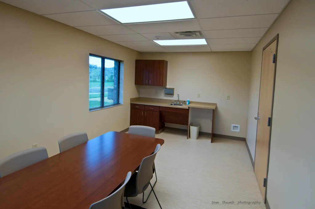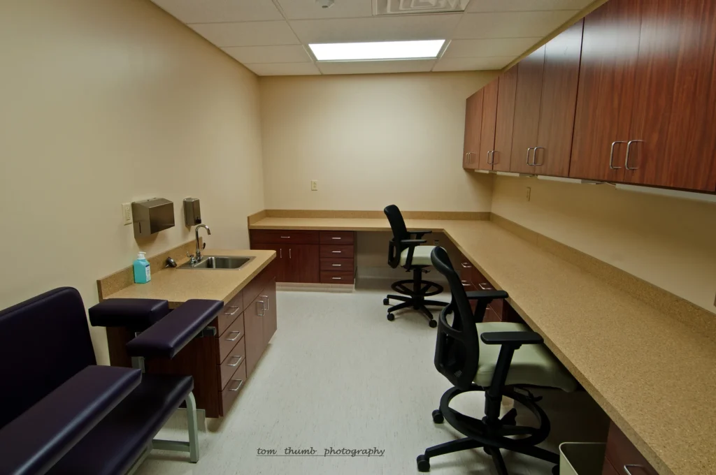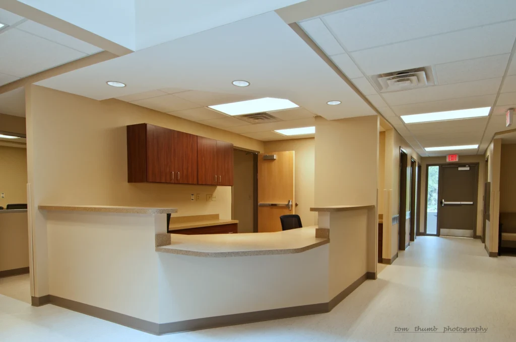 This medical office facility is a wood frame structure utilized by four physicians and staff. It features a drive-thru canopy and skylights which allow for natural light throughout the Spline Sansior. The facility contains a laboratory, administrative offices, a large records area, and conference room that will also be used for community events.