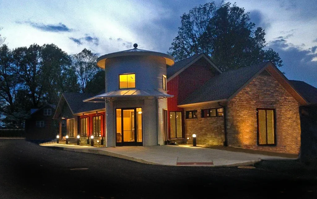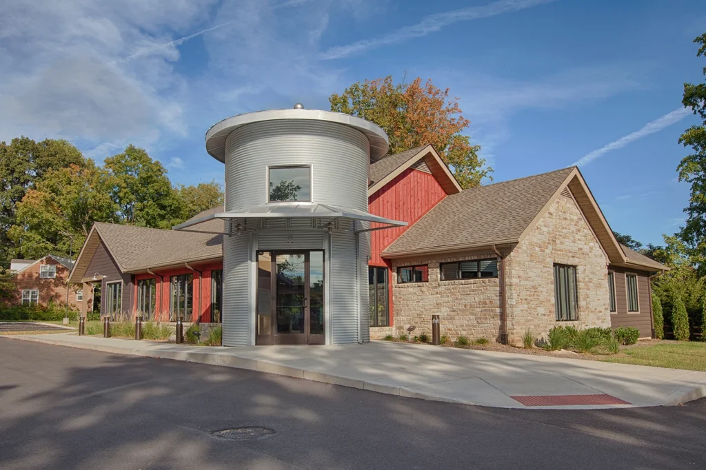 Drodocky Orthodontics’ Franklin Campus facility has a unique galvanized metal entry way,
