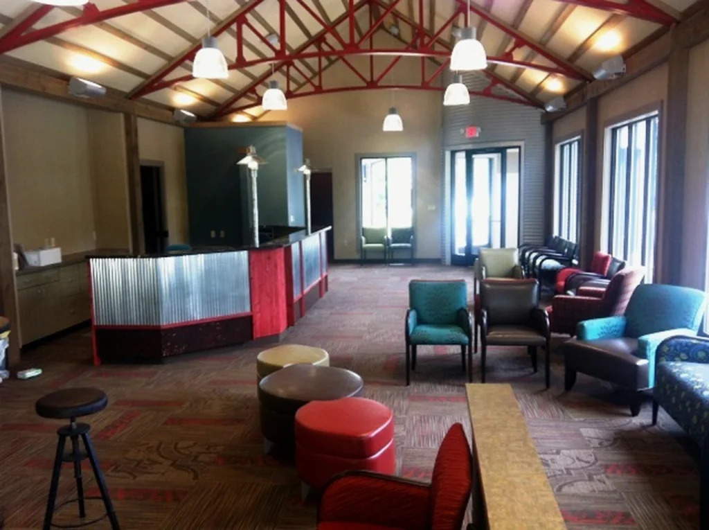 custom fabricated steel trusses in the waiting area, two fully functional surgical rooms and six
