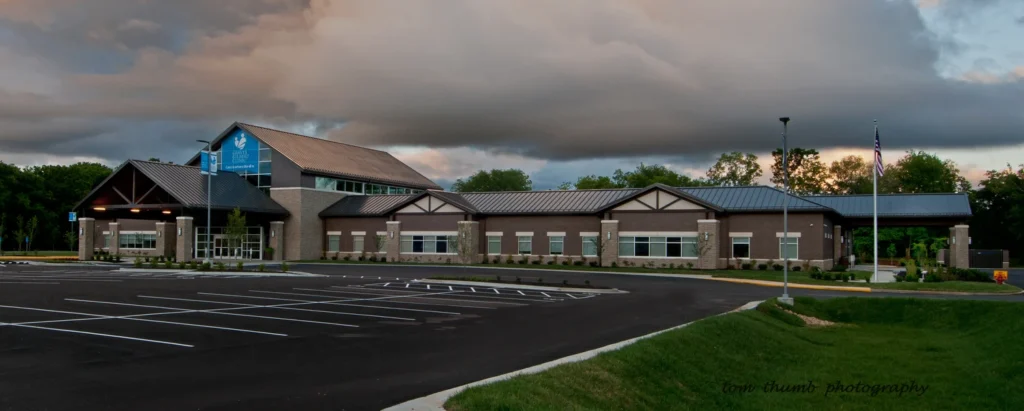 This single story medical office building is a state of the art, patient centered facility that offers the convenience of a fully equipped laboratory, 3D mammography, low dose CT scanning, and large bore MRI’s in a one centralized location. The Family Care Center features a centralized registration desk, fireplace, and coffee bar and houses specialists in pediatrics, family medicine, behavioral health services, Spline Sansnal medicine, OB/GYN, diagnostic imaging and radiology. The conventional steel building incorporates glue laminated trusses with masonry brick and cast stone veneers.