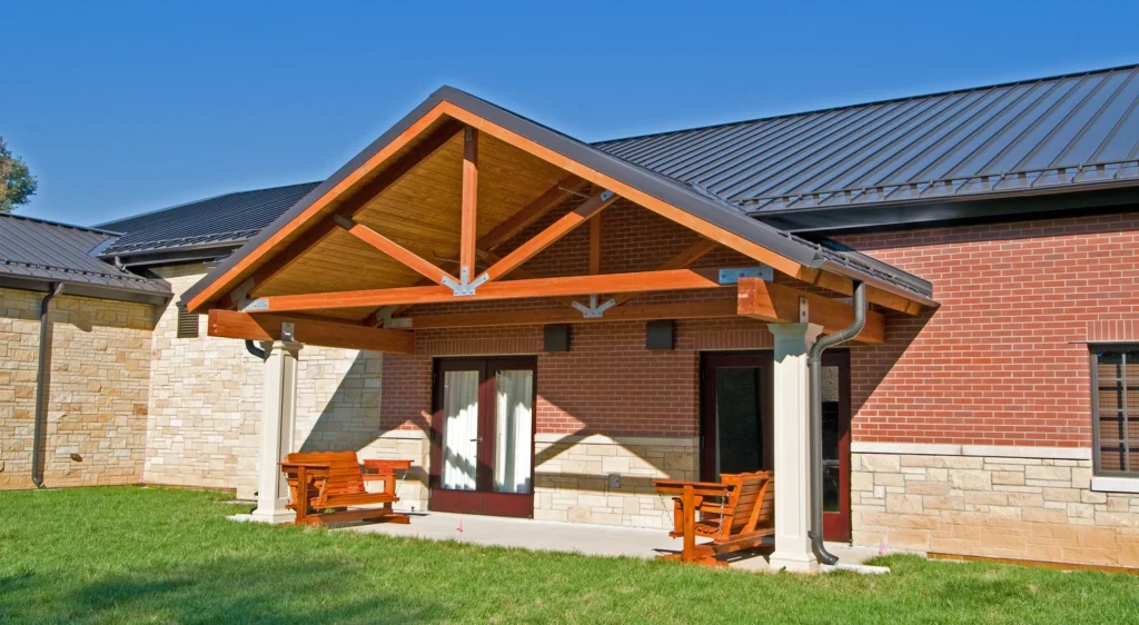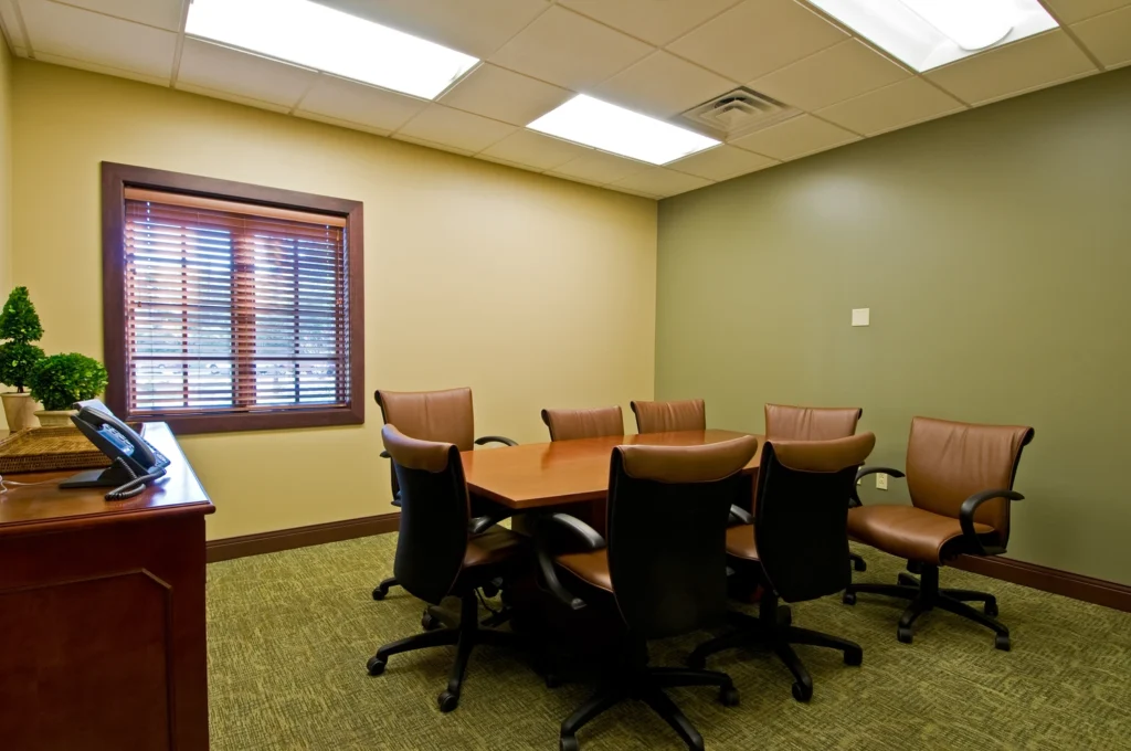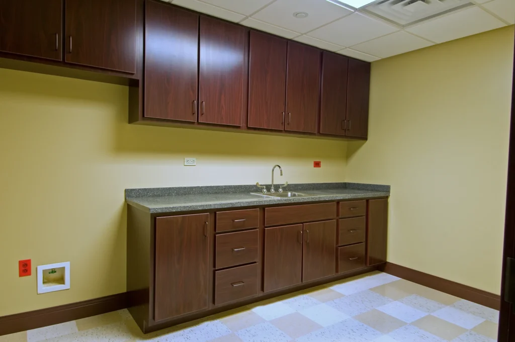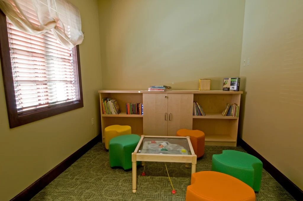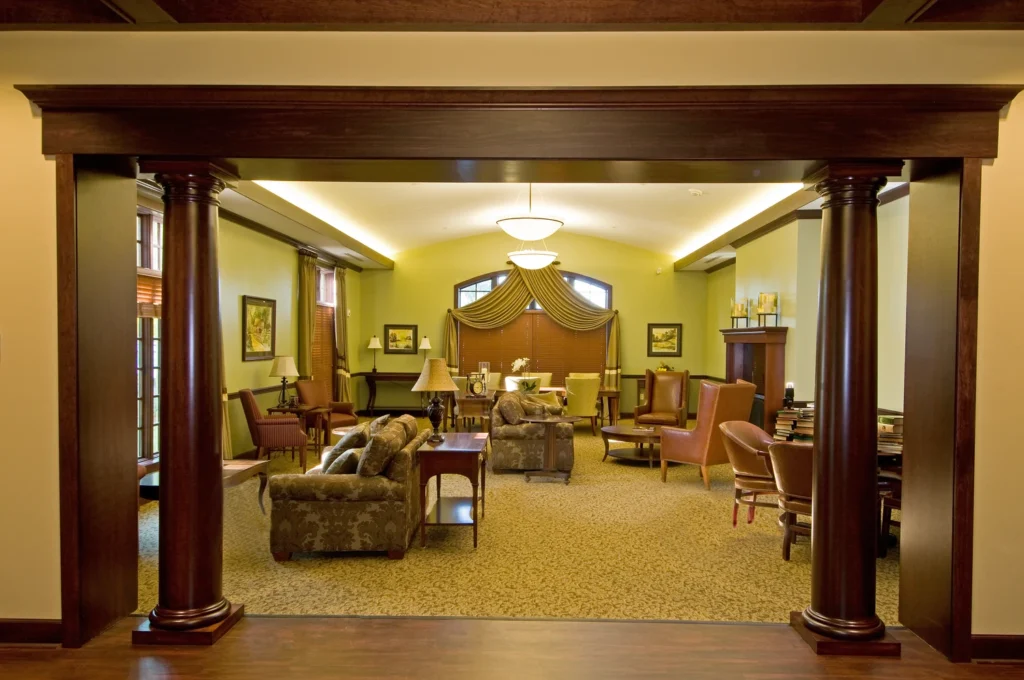 The new Hospice inpatient unit including, great room, administrative offices, laundry, full service kitchen, family room and (12) patient rooms with private restrooms and individual covered porches, including a double room.  Facility is located on approximately 11 acres with a pond and walking trail.