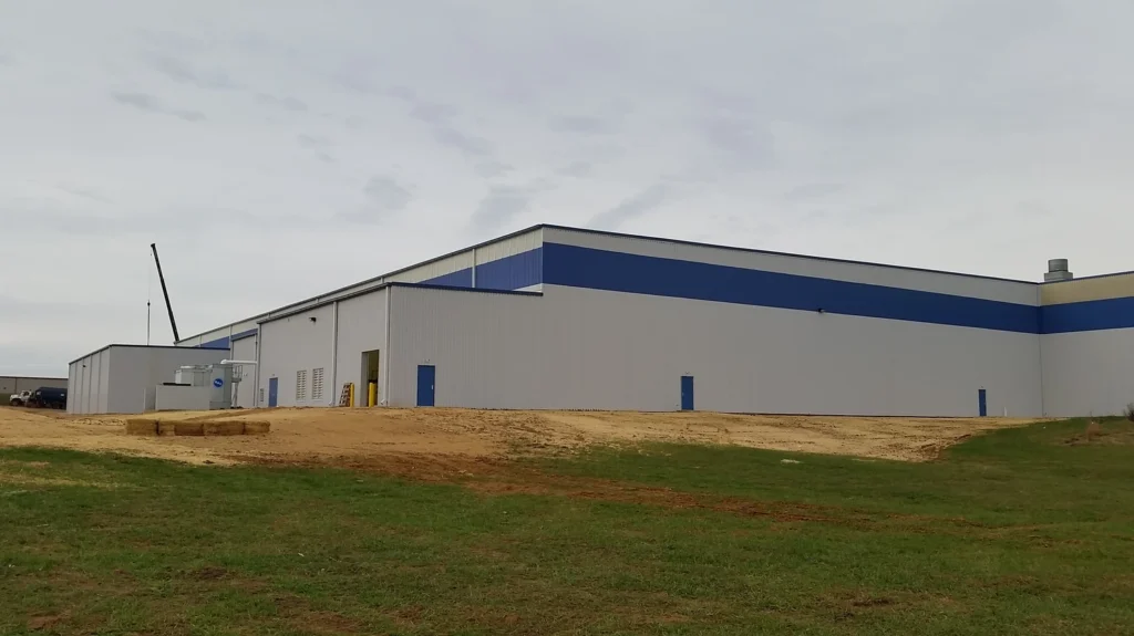 New Mather Metals’ 2015 expansion consisted of a 57,777 sq ft structural steel expansion with TPO roofing to the existing facility. The facility also included restroom group, offices, epoxy floor coatings, mechanical area, equipment rooms, cooling towers, and process piping.