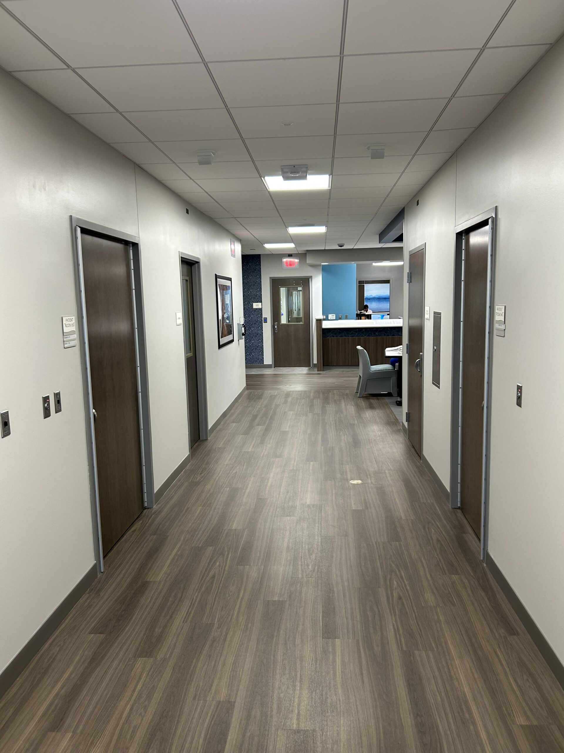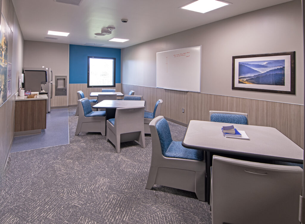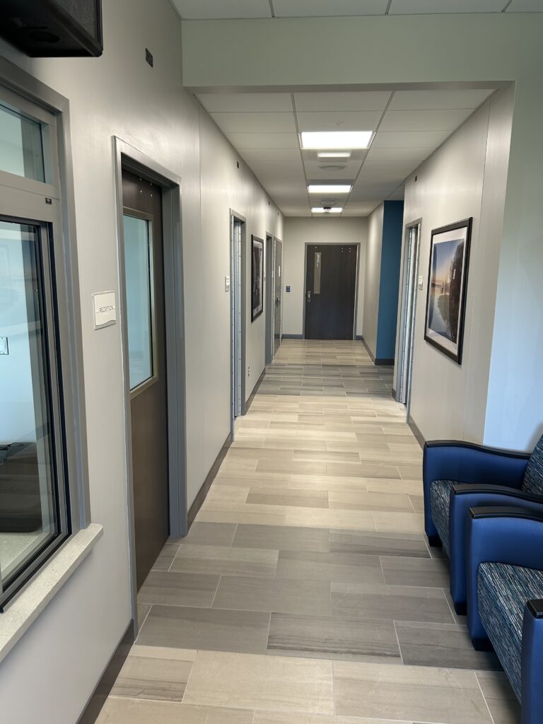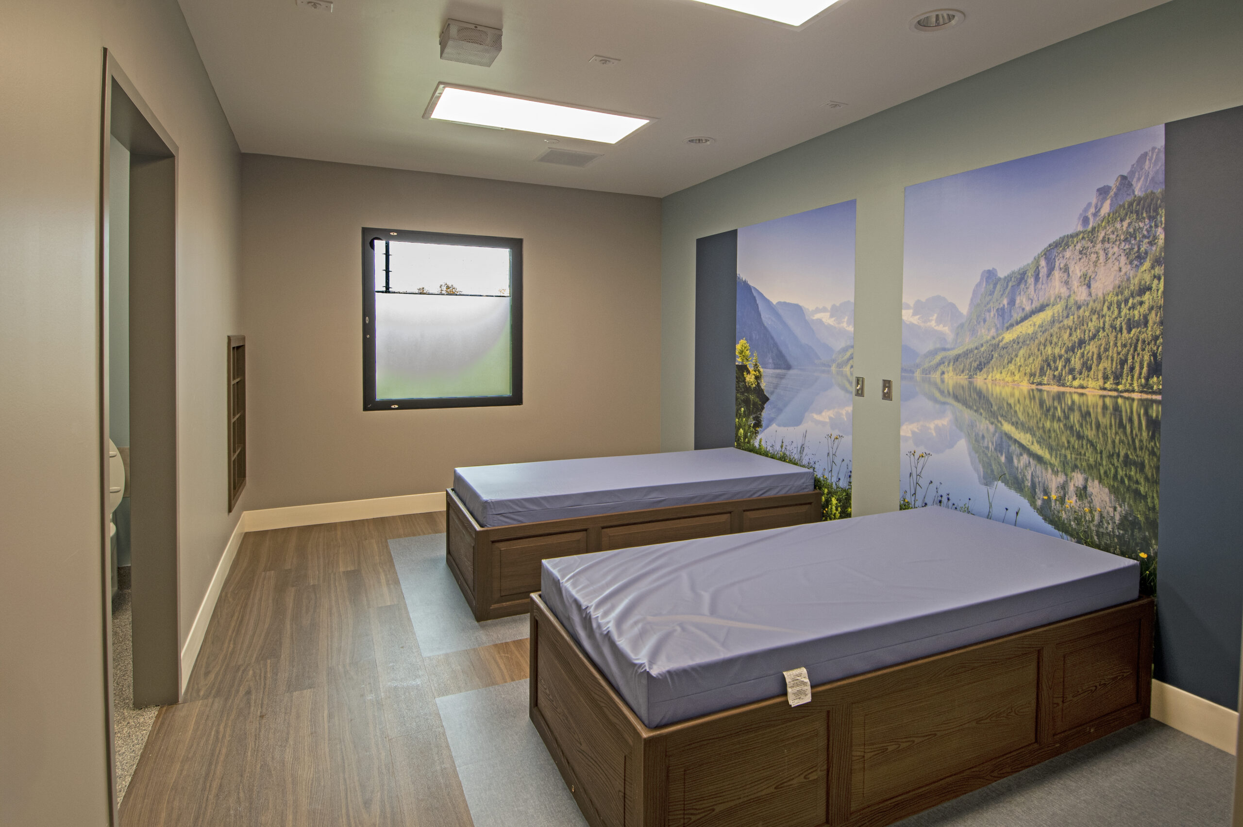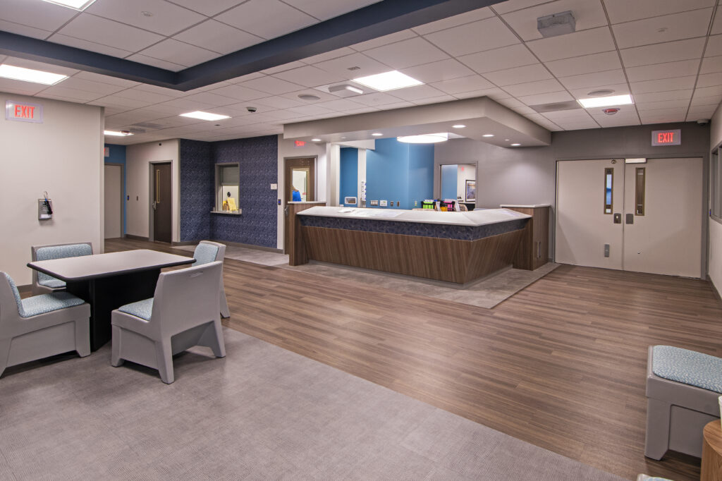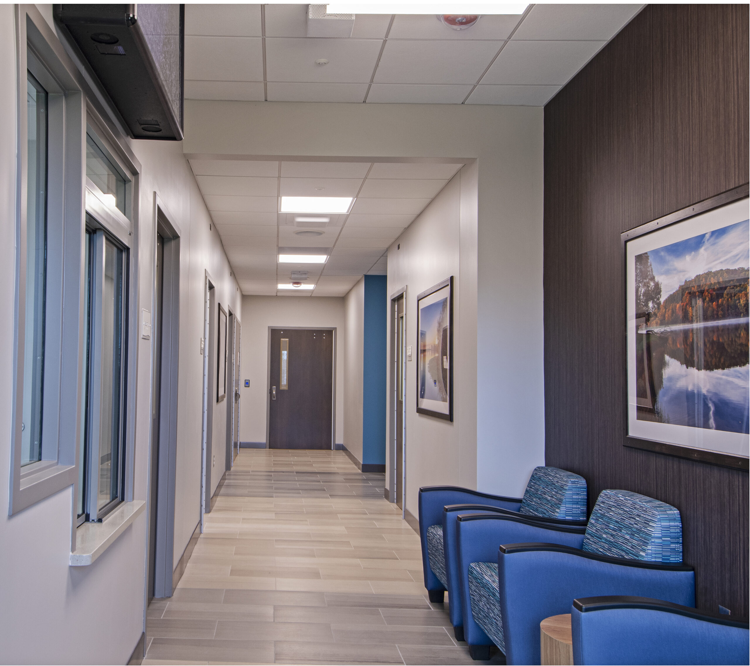 Scott, Murphy & Daniel completed the construction of a 24‑bed adult behavioral health wing addition designed to match the existing hospital in both architectural character and construction type. The addition features a conventional structural steel framing system with bar joists and a metal deck roof, complemented by exterior finishes of stone veneer, brick veneer, and an EIFS parapet assembly. Interior spaces were thoughtfully planned to support patient care and staff efficiency, including administrative offices, exam and patient assessment rooms, a centralized nurses station, and a dedicated medicine room. Patient accommodations include twelve shared patient rooms, supported by four group and activity rooms and two secure exterior activity areas that promote therapeutic engagement and recovery.