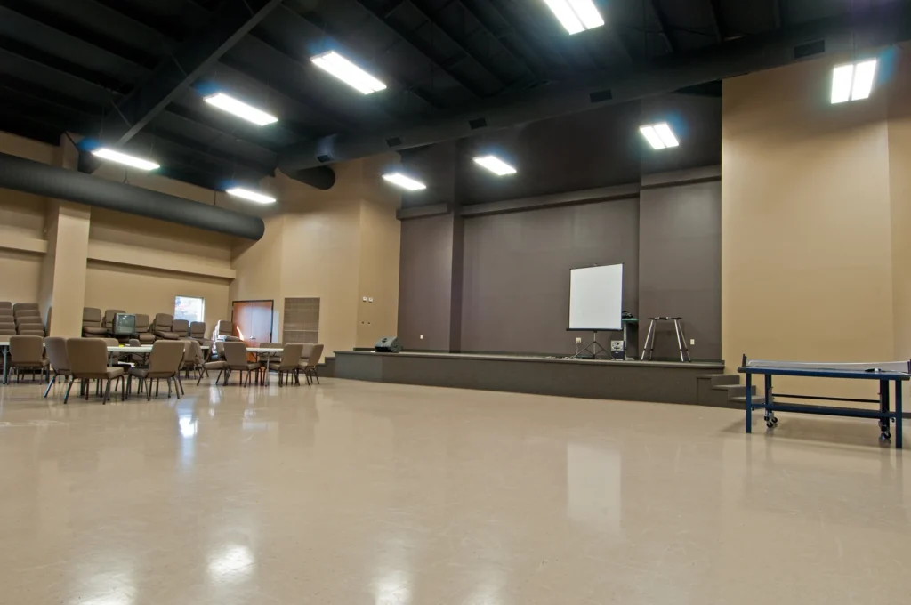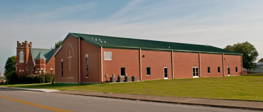 The new education and sanctuary facility consists of a one-story pre-engineered metal building structure with a masonry and metal siding exterior. Some of the amenities include 12 classrooms, two restroom groups, two offices, kitchen, workroom, nursery, and one large assembly area with stage. The new is adjoined to existing building by a 500 sq ft connector.
